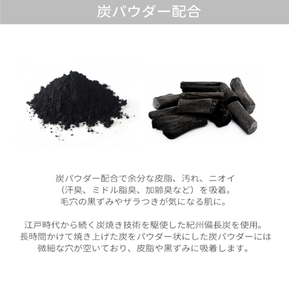 長時間かけて焼き上げた炭をパウダー状にした炭パウダーには微細な穴が空いており、皮脂や黒ずみに吸着します。