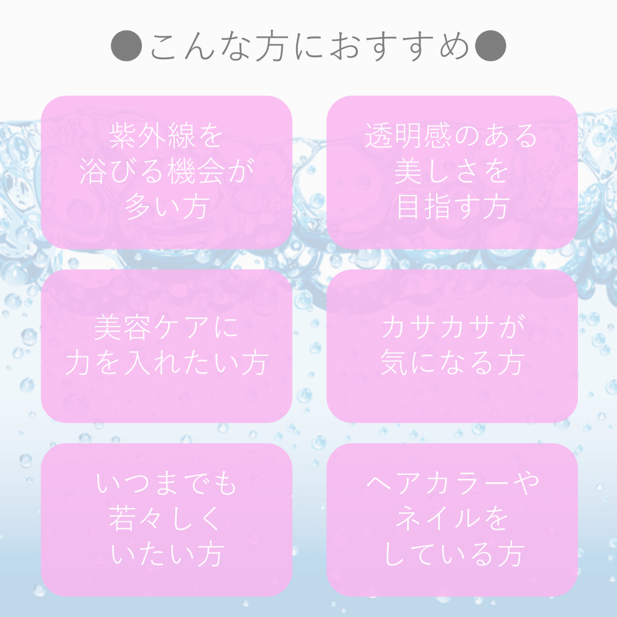 透明感のある美しさを目指す方、ネイルケア、ヘアケアを心がける方に。