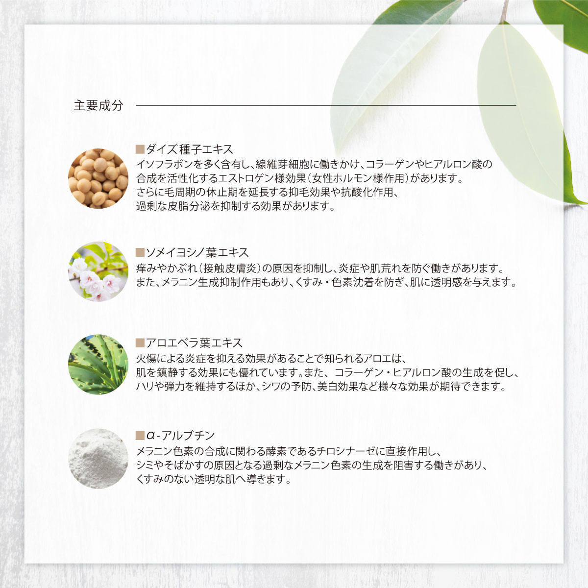 ムダ毛ケア後の肌を整え、面倒なお手入れをサポートします。
