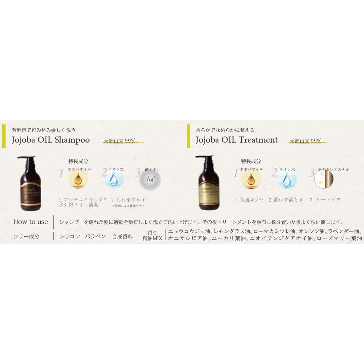 精油100%の贅沢な香りに包まれるノンシリコンシャンプー。