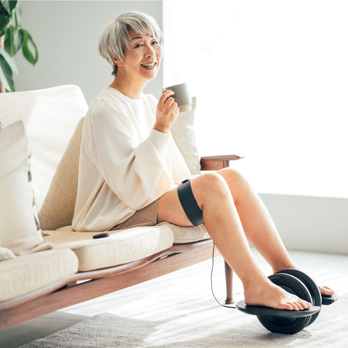 足の動きを認識し、最適なEMS(電気)刺激を送るハイブリッドトレーニングを自宅で簡単に。