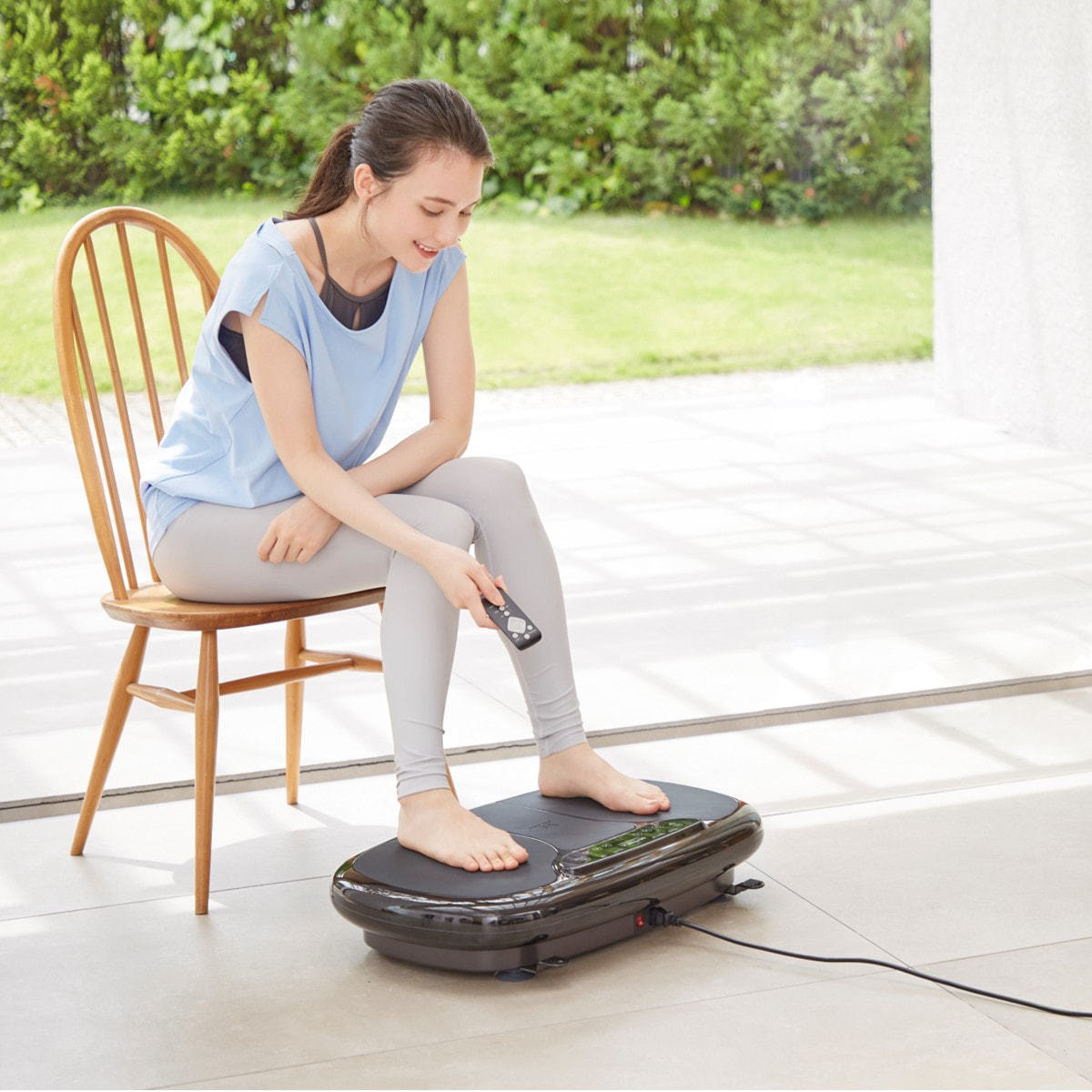座った状態で足を乗せるだけでも、生活に欠かせない下半身の筋肉にアプローチ。